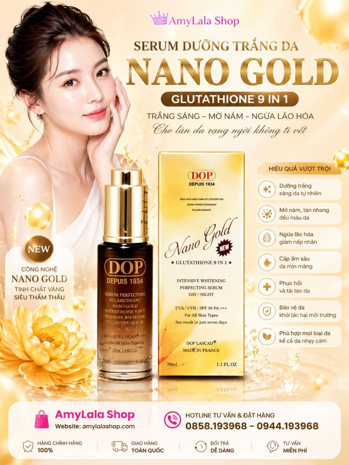 Tinh chất vàng 24k Dop Lascad® Nano Gold Glutathione 9in1 Serum 39ml (Made in France) Hotline: 0858.193968 (Zalo) - 0944.193968 (Zalo) - www.amylalashop.com :